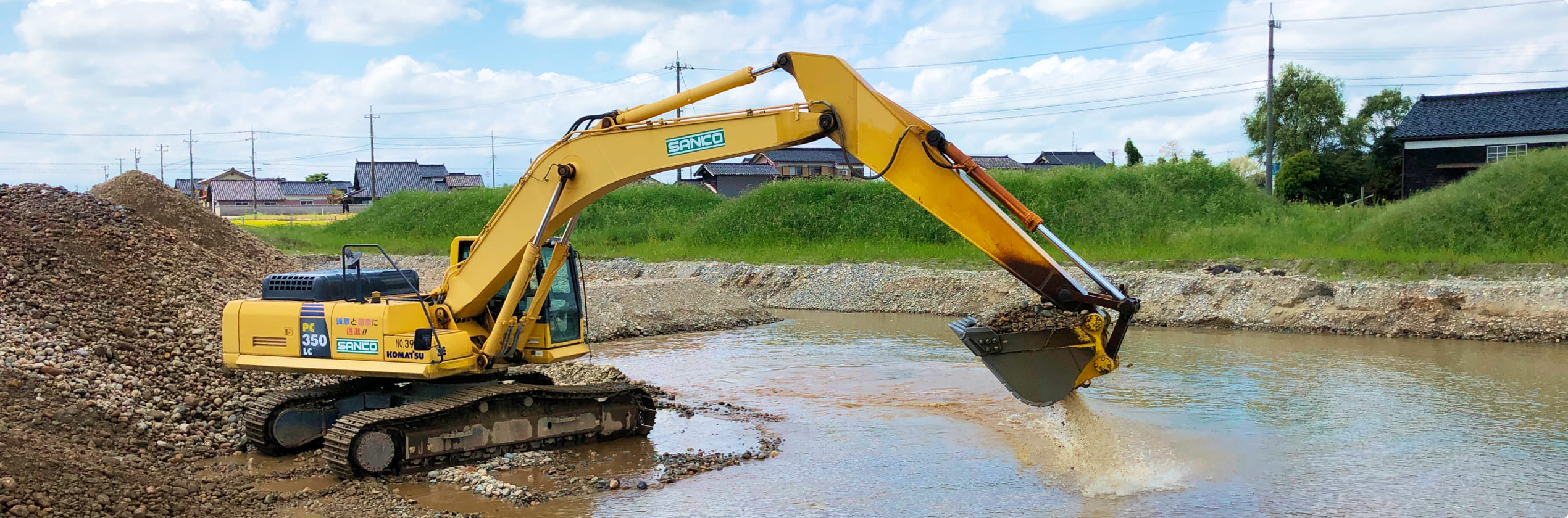 当社は土木・建設事業を基盤に、飲食事業および砂利採取販売を展開中。